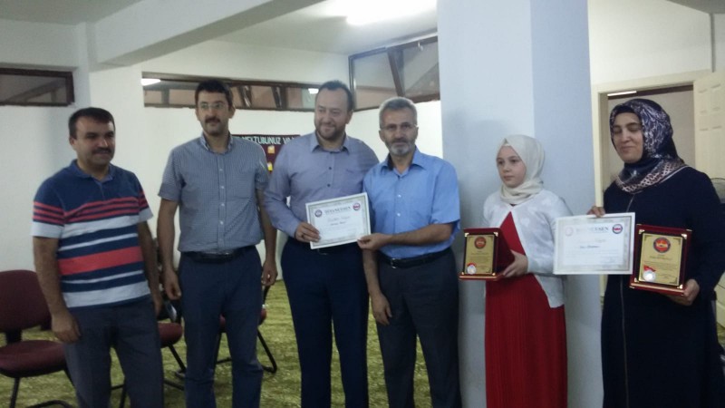 Millet Camii İmam Hatibi üyemiz Kurra Hafız Mustafa Orhan'ın kızı ve Yatılı Merve Kız Kur'an Kursu öğrencisi Enise Berra Orhan’ın yetişmesinde ki katkılarından dolayı hocası Hafız Asiye Bayrakçı ve Babası Mustafa Orhan Hocalarımıza da Memur-Sen Genel Başkan Yardımcısı ve Diyanet-Sen Genel Başkanı Mehmet Bayraktutar imzalı teşekkür belgesi verildi.